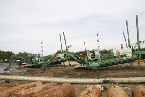 Las dragas multipropósito anfibia WATERMASTER supera por sí misma tareas que normalmente son gestionadas por múltiples máquinas separadas. Con su amplia variedad de accesorios de cambio rápido, la Watermaster puede utilizarse para profundizar vías acuáticas de poca profundidad, evitar inundaciones, remover vegetación invasiva y desperdicios y mantener estanques industriales, así como en proyectos de infraestructuras en el entorno acuático, ríos lagos y costas.